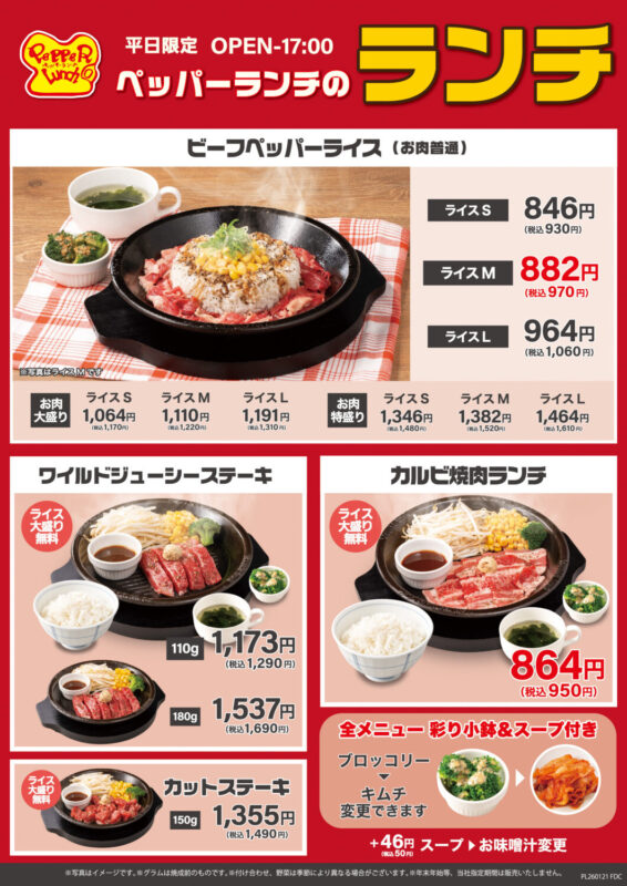 ペッパーランチは、2026年1月21日(水)よりランチメニューの内容を大幅にリニューアルいたします。