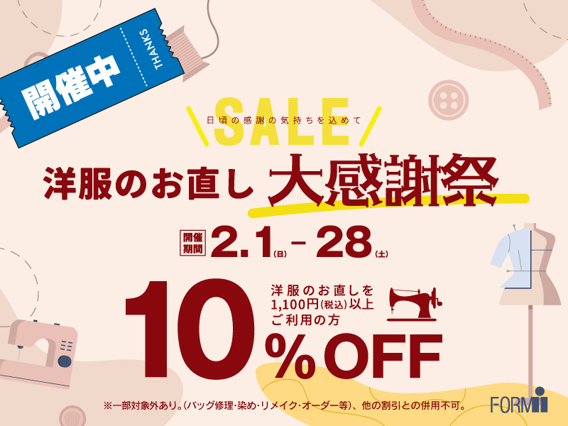 本日、2月1日(日)より『洋服のお直し』 大感謝祭🎉がスタート!!