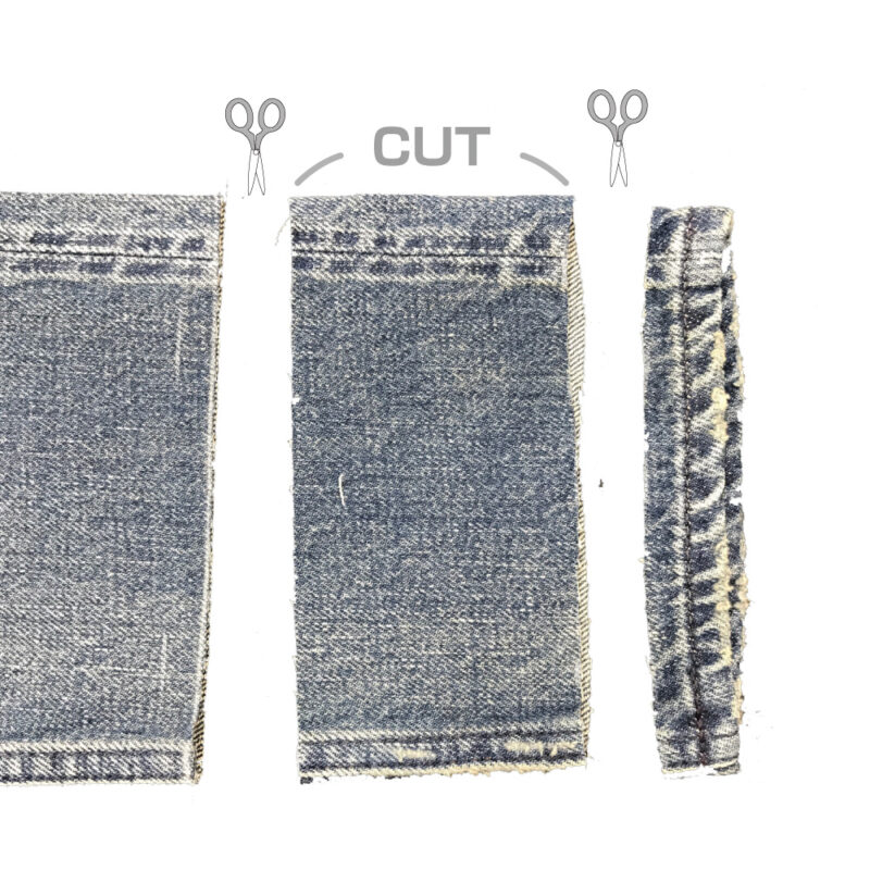🪄アタリ部分の寸法を計算してカットしたジーンズ本体と、