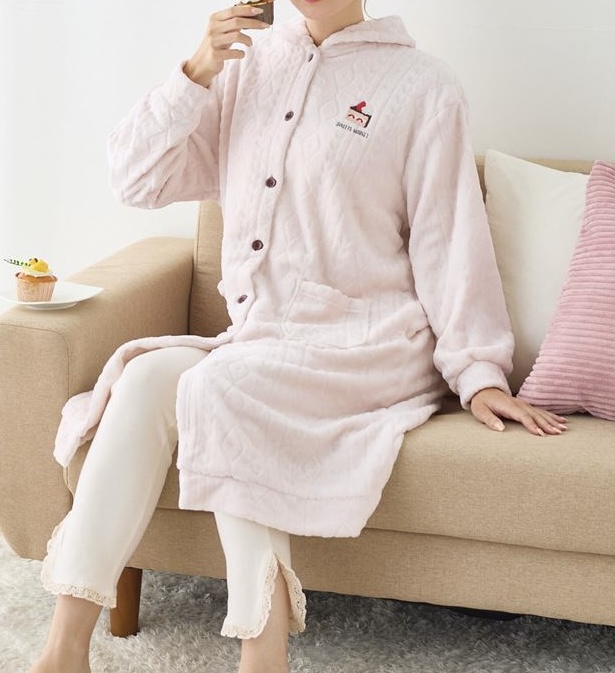 長丈のガウンタイプで前開きのため、冷え込む朝晩にパパッとラクに羽織ることができます⋆ ˚。⋆୨୧˚