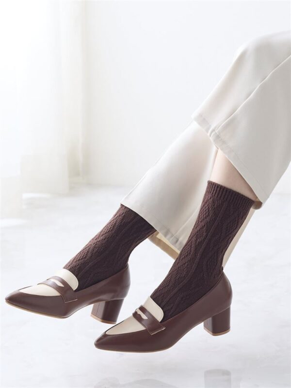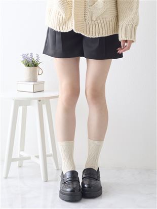 立体的なリンクスダイヤ柄の靴下はベーシックなデザインで様々なコーデに合わせやすいです◎