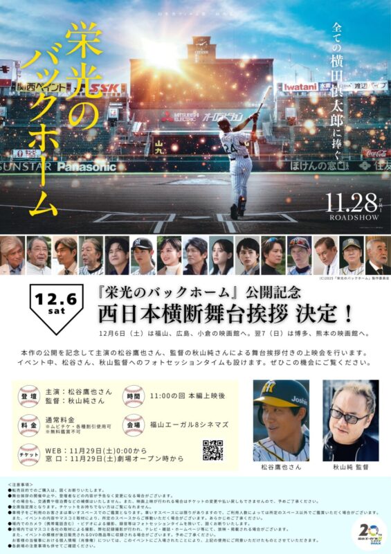 12月6日(土)は福山、広島、小倉の映画館へ。翌7(日)は博多、熊本の映画館でへ。