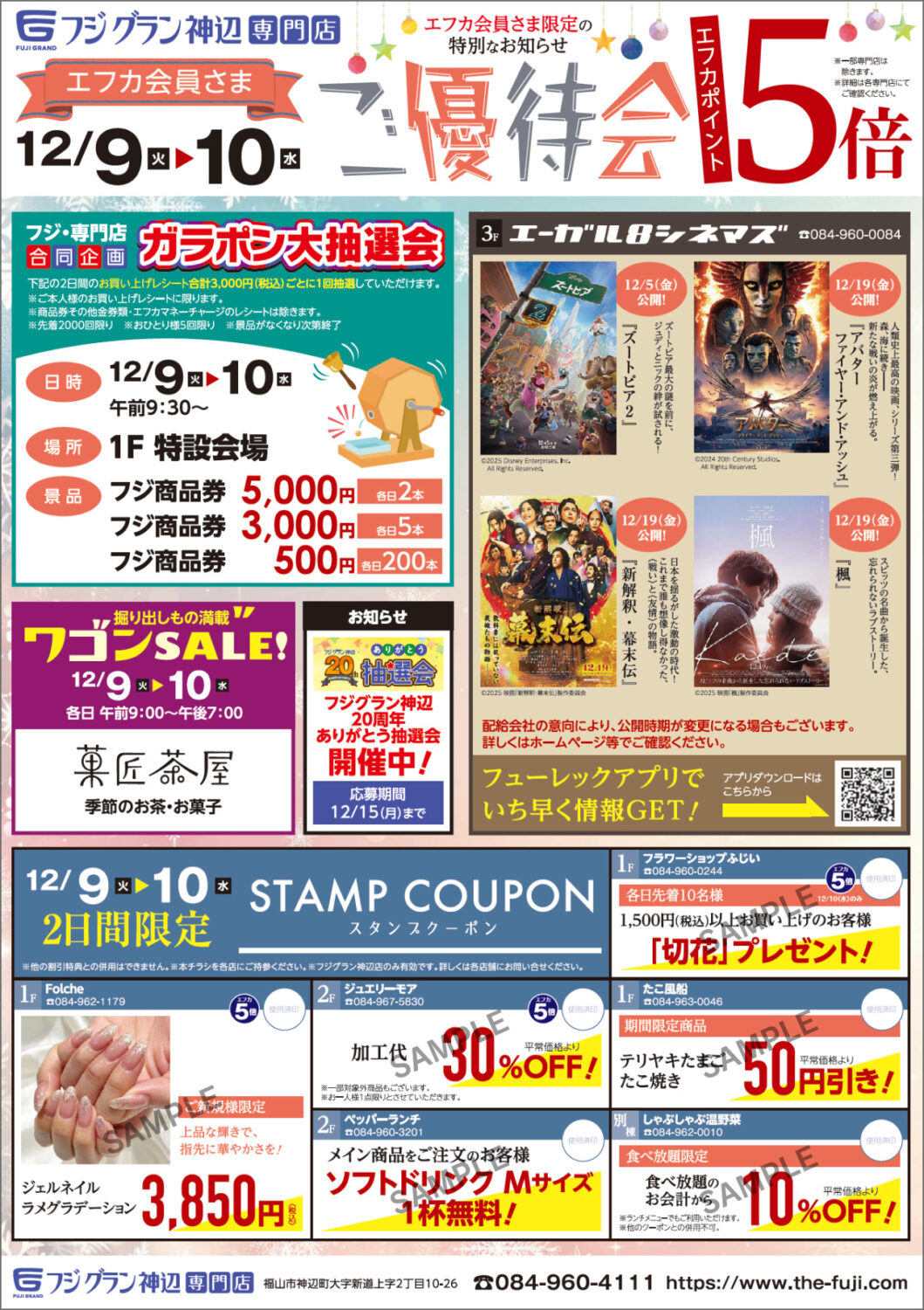 エフカをご利用で、フジ・フジグラン直営売場でのお買上げ金額(本体)からレジにて5%OFF